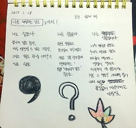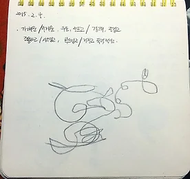 그림책 이야기: 이미지와 텍스트 (수업소개링크) 2 회차 : 이미지 언어, 이미지 감정 (2015.2.4) 1. 각각의 감정에 몰입하여 앞의 사물을 그려보기 - 가벼운 / 무거운 - 우울, 슬픔 / 경쾌, 즐거움 - 조용함 / 시끄러움 - 부드러운 / 거친, 폭력적인 * 연습 도구: 연필 * 거칠고, 폭력적 도구: 만년필 * 우울함 도구: 붓펜 * 우울함 (위) / 조용함 (아래) 도구: 색연필 (위), 라이너 (아래) * 무거움 (위) / 경쾌함 (아래) 도구: 색연필 (위/아래), 형광펜 (아래), 라이너 (아래) * 부드러움 도구: 수채색연필, 물붓 * 조용함? 우울함? 도구: 색연필 * 시끄러움 도구: 색연필, 라이너 * 가벼움 도구: 볼펜 그림: 이건임2015. 2. 4. 2. 관련하여 참고할만..